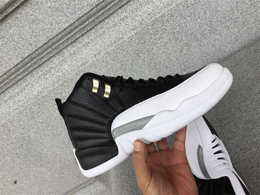 Air Jordan 12 playoffs black and white silver buckle